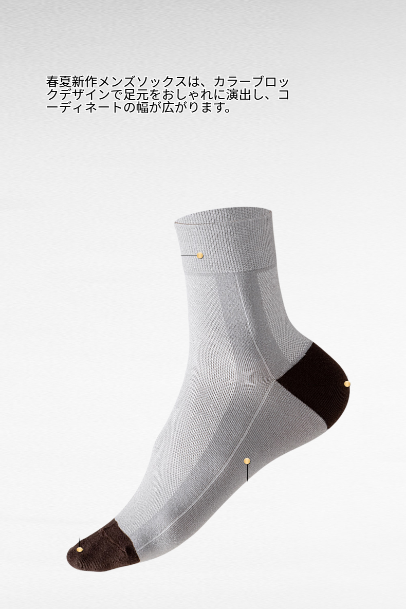 ● 春夏新作メンズソックスは、カラーブロックデザインで足元をおしゃれに演出し、コーディネートの幅が広がります。