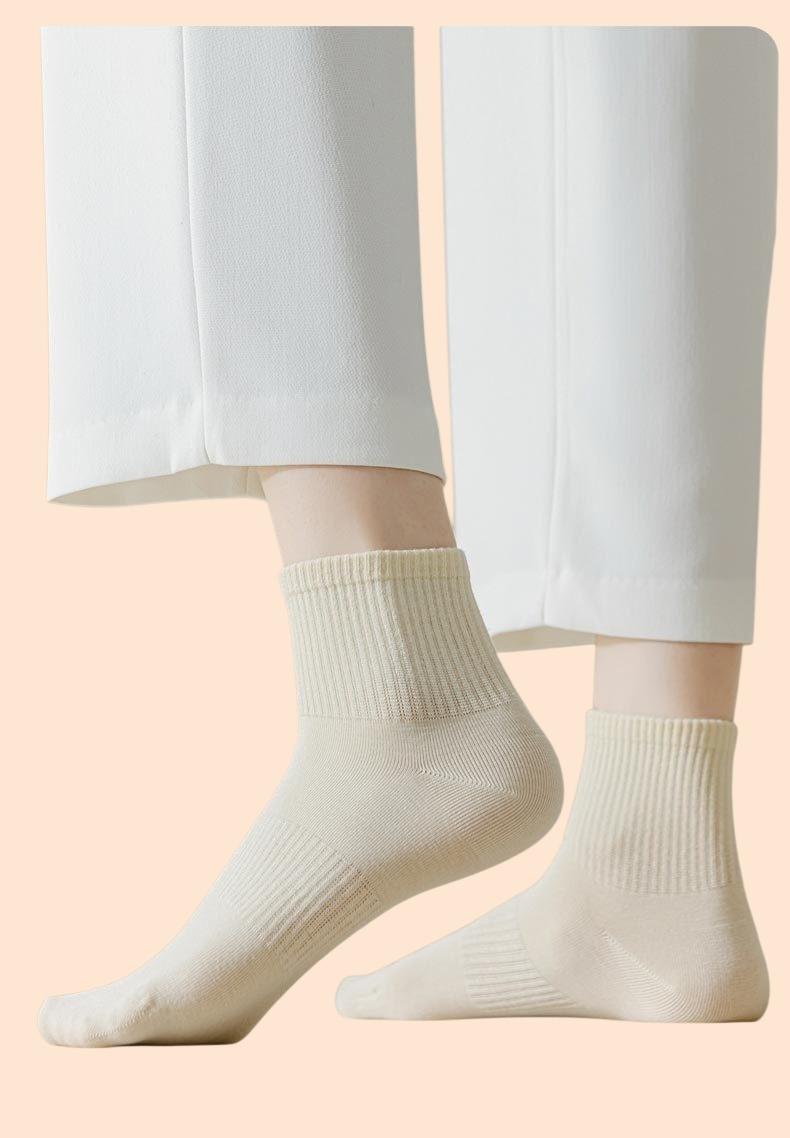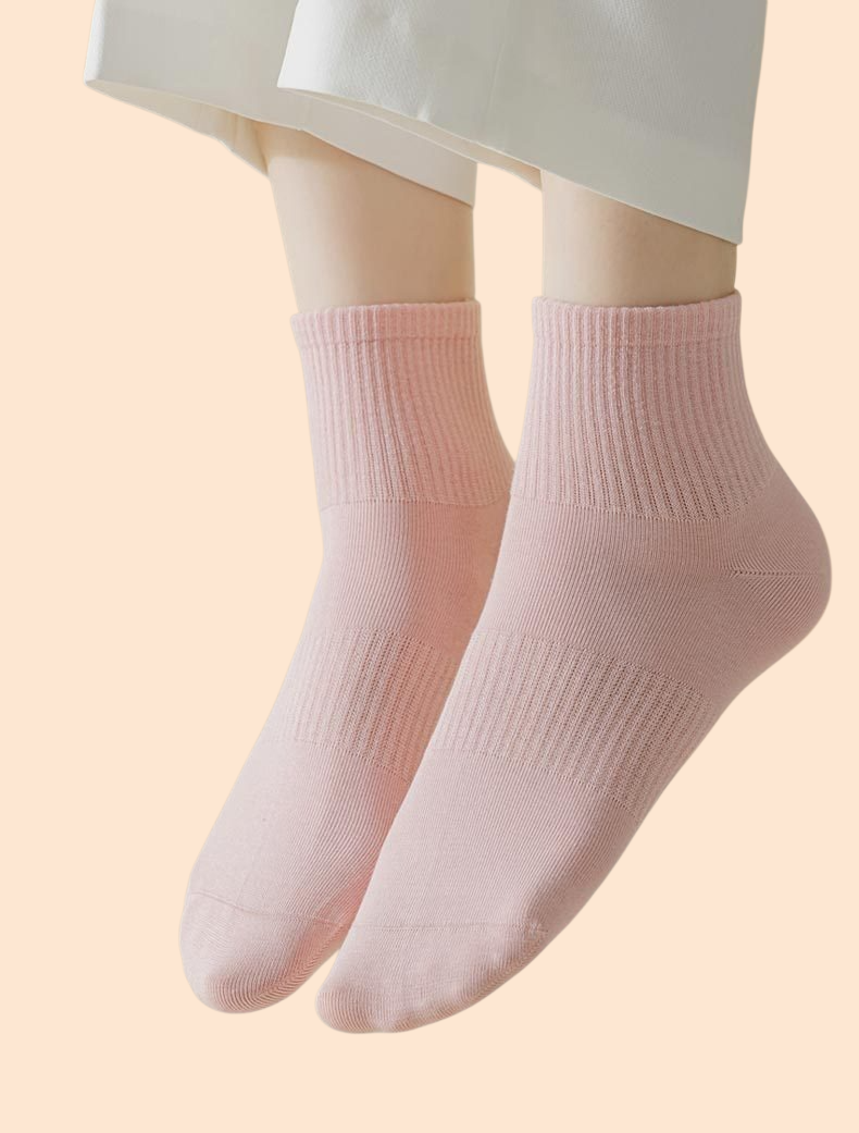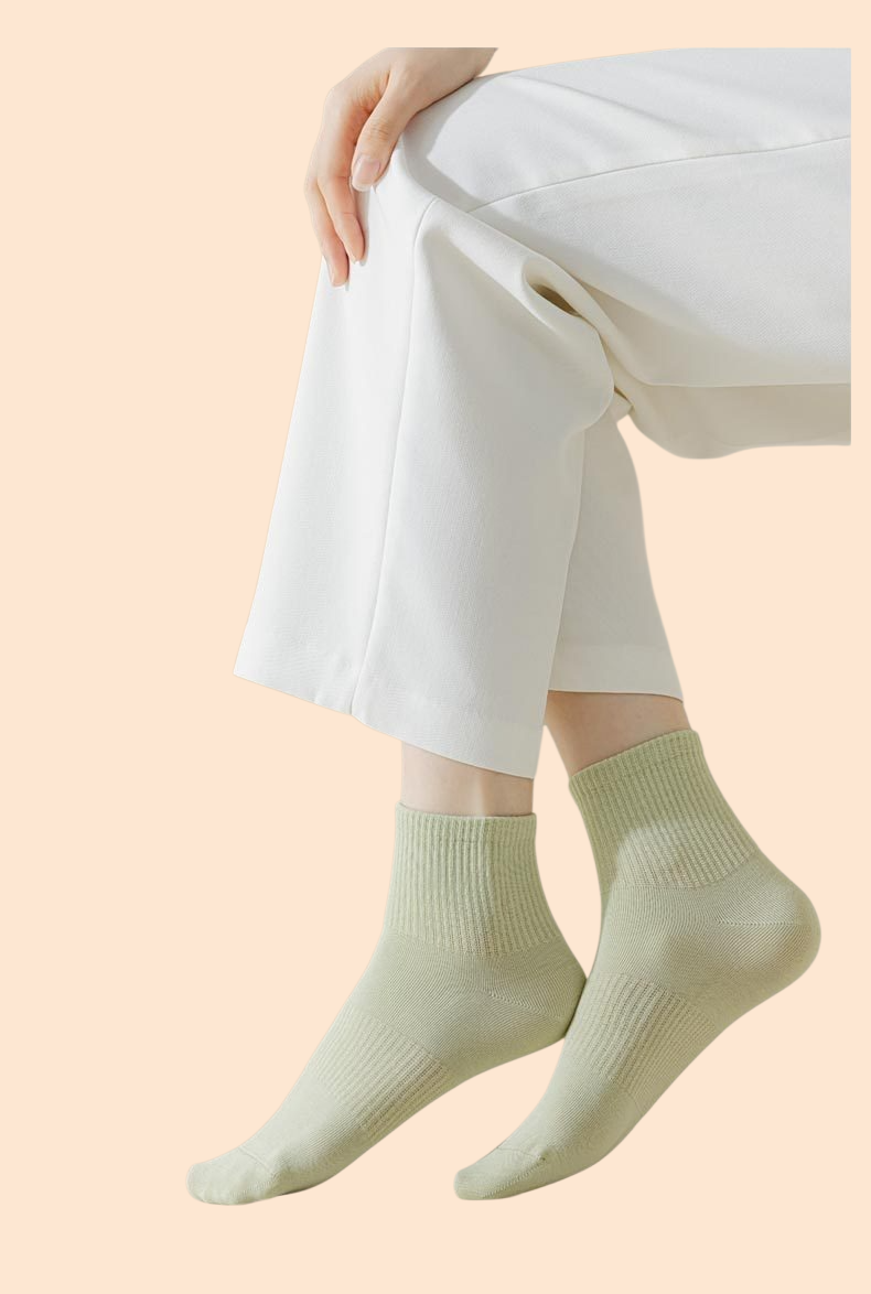 女性用純綿ソックス・無地・吸汗・通気性・カジュアル薄手ミドル丈
