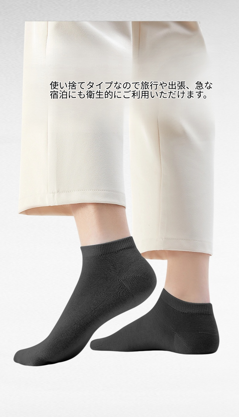 ● 肌に優しい素材を使用し、敏感肌の方でも安心して着用できる使い捨て靴下です。
