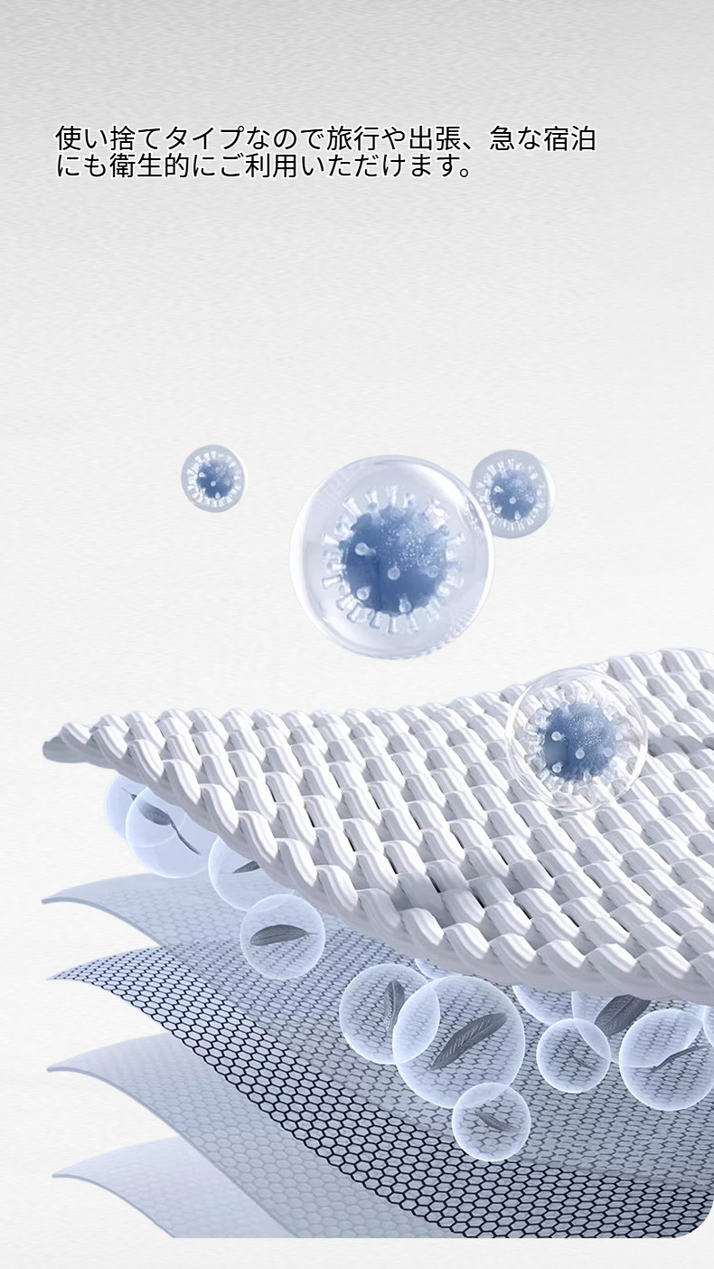 ● 使い捨てタイプなので旅行や出張、急な宿泊にも衛生的にご利用いただけます。