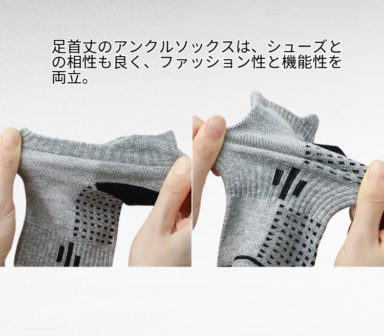 ● 足首丈のアンクルソックスは、シューズとの相性も良く、ファッション性と機能性を両立。